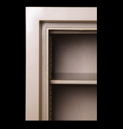 | Badan | : | Total ketebalan 85 mm terbuat dari pelat baja dalam dan luar yang di las menjadi satu kesatuan dan berisi bahan padat formula AS 90. Di sekeliling pintu terdapat "Fire Blocking Construction". |