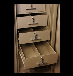 Merupakan pengembangan produk dari Document Safe yang mempunyai ketahanan yang lebih terhadap ancaman pencurian & pembongkaran yang menggunakan peralatan las oxy-acetylene, bor & peralatan mekanik lainnya. Disekeliling pintu dilengkapi "Fire Blocking Construction" yang memberikan keamanan tinggi terhadap api. sangat cocok untuk di pakai pada lembaga Keuangan seperti Leasing, Finance, BPR, Koperasi Simpan Pinjam & Juga Perbankan. Tebal Badan : 90 mm Tebal Pintu : 130 mm Tebal Lapisan Pelindung Pintu : 60 mm Pengunci : Kunci kombinasi 3 Roda + Kunci 6 Lever, Checklocking Dial, Spy Proof Ring |